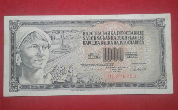 • Cédula valor de 1000 dinara/Iuguslavia!!  flor de estampa !! decreto de 1981 !!