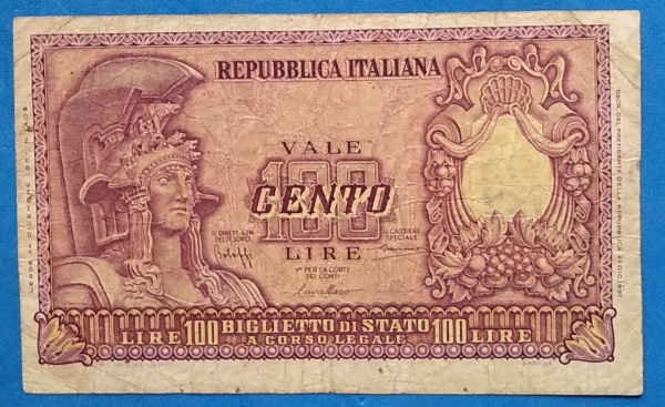 •  Cedula - Italia !! ! Decreto de 1951    !!! Figura artistica de soldado Romano !!!