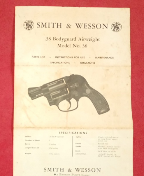 • Colecionismo- manuial de uso e manutenção do Revolver calibre 38 !! material original antigo !! acervo de colecionador !!