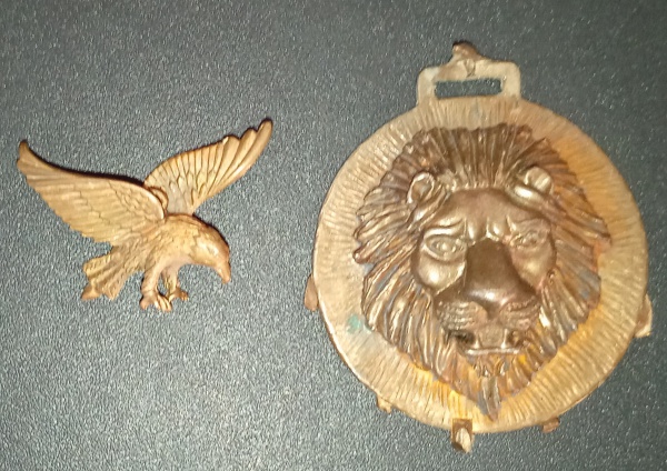 • Medalha - 2 pecas de metal !!! figura do Rei Leão !!!! e pequena aguia em posição de cacaRR !! artigos antigos !!