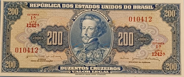 • Cedula _ Brasil - valor de 200 cruzeiros Azul !! serie 12142A  !! Flor de estampa !! catalogo marca no intervalo de 1071 até 1570 = 100,00 reais !! valor incial muito abaixo !!