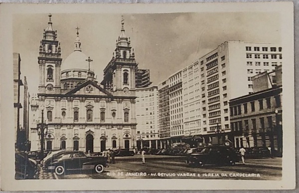 • Cartofilia - vista da Igreja da Candelária , decada de 1950 !!! estacionamento de carros que não existe hoje em dia !!!