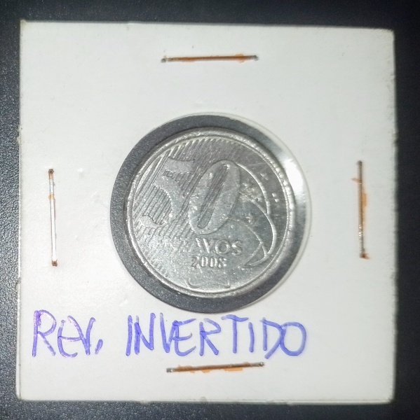 • Moeda - Brasil - valor de 50 centavos ano de 2008  !! reverso invertido !! erro classico  !! dificil de aparecer !! alto valor de mercado !!