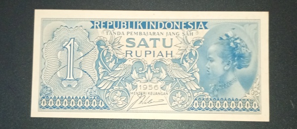 • Cedula- Estrangeira , República da |Indonésia !! decreto do ano de 1956 !! Flor de Estampa !! valor de 1 Rupiah !!  dificil de aparecer !!