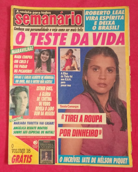 • Revista SEMANARIO !! O TESTE da Vida !! Tassia Camargo fala - Tirei a Roupa Por dinheiro !! edição de 12/1989 !!  acervo de colecionador !! o Incrivel IATE de NELSON PIQUET !!