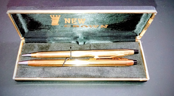 • Canetas  !! conjunto de 2 peças !! New Cross e Cross !! caneta e Lapiseira !! cor de ouro !! no estojo original !! acervo de colecionador !!