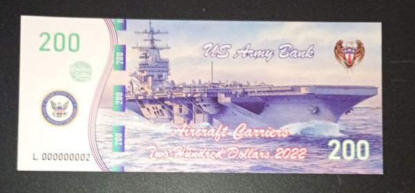 • Cedulas - tipo fantasia - valores de 200 dolares !! deenhos de lindo Porta Avioes !! acervo de colecionador !! estado flor de estampa .. papel cartão !!