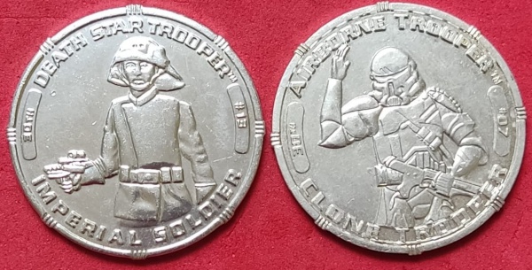 •  2 Moedas/ Star Wars !! Comemorativa 30 anos 1977/2007 !! Soldado Galactic  !!+ Macquarrie     !!