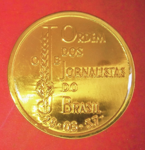 • Medalha - comemorativa a Ordem dos Jornalistas !! emitida no ano de 1957 !! metal cor dourada !! com 50mm de diametro !! acervo de colecionador !!