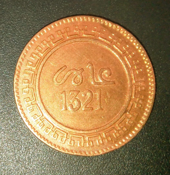 • Moeda do Marrocos !! peça comemorativa ao ano de 1321 !! em material bronze !! lindo desenho !! alto valor internacional !!