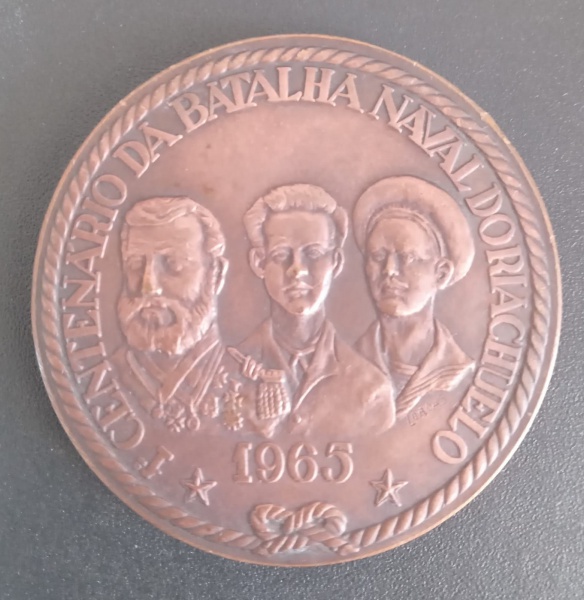 • Medalha - comemorativa do Centenário da batalha Naval do Riachuelo !! periodo de 1865 / 1965 !! material Bronze !! diametro de 50mm !! cunhada na casa da Moeda !! alto valor de mercado !! acervo de colecionador !!