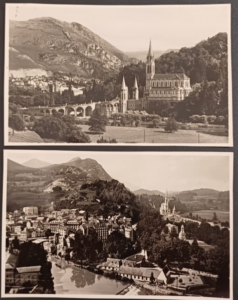 • Cartofilia - 2 peças -  EUROPA - Lourdes   !!  !! decada de 1950 !! vista aerea e catedral do local !! acervo de colecionador !! Pretro e branco !!