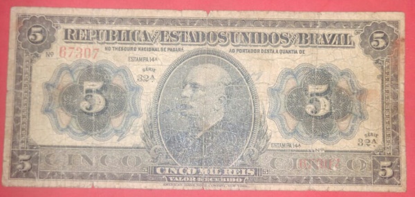 • Cédula/Brasil - 5 mil réis, circulação de 1913 até 1950!!! valor de marcado cerca de 200,00 reais !!