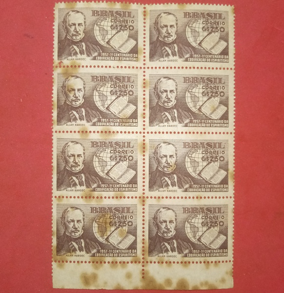 • Filatelia, 2 quadras/Brasil ano 1957- Centenário da codificação do espiritismo!!!