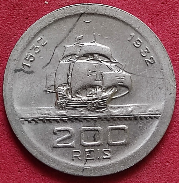 • Moeda/ Brasil - Flor de cunho !! comemorativa Vicentina valor de 200 Réis !! com trinca de impressão .( marca de cunhagem ) acervo9 de colecionador !!