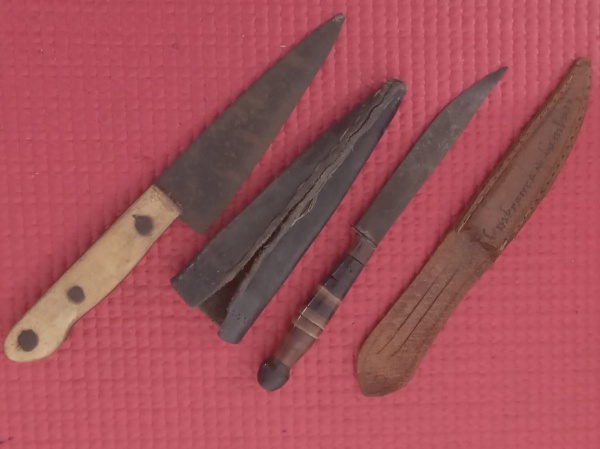 • Colecionismo- 2 Punhais pequenos !! modelos nordestinos !! punho de madeira e bainha em couro !! tamanho de 14,5 cm !!