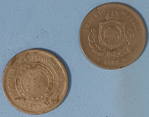 • 2 moedas - Brasil - valor de 100 Reis !! anos de 1889 !! desenhos diferentes !! Republica e Imperio !! ano da proclamação da republica !!