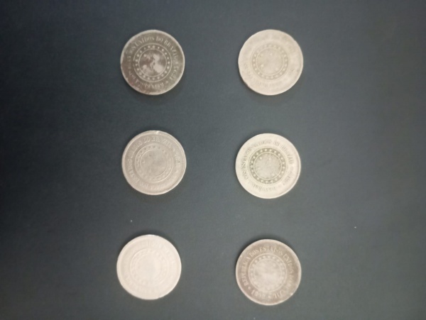 • 6- moedas - brasil - valor de 100 reis  anos de 1889 , 1893, 1895, 1896, 1897 , 1898 !!  material niquel !!