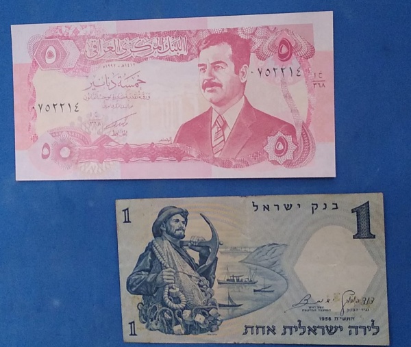 • 2 cedulas - Israel /Mbc + Iraque com figura de Sadan , Flor de estampa !!!
