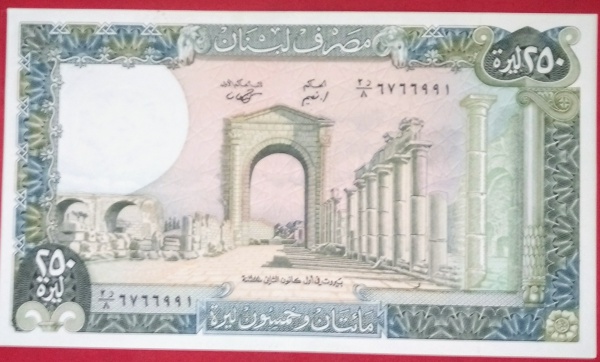 • Linda cédula de tamanho maior que o convencional país Líbano - ano 1988, valor de 250 livres - flor de estampa!!