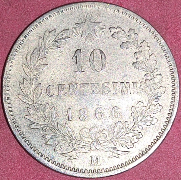 • Moeda - Italia !!  - valor de 10 Centesimi  !! ano de 1866  !! raridade !! material bronze  !! , alto valor internacional !!! ,