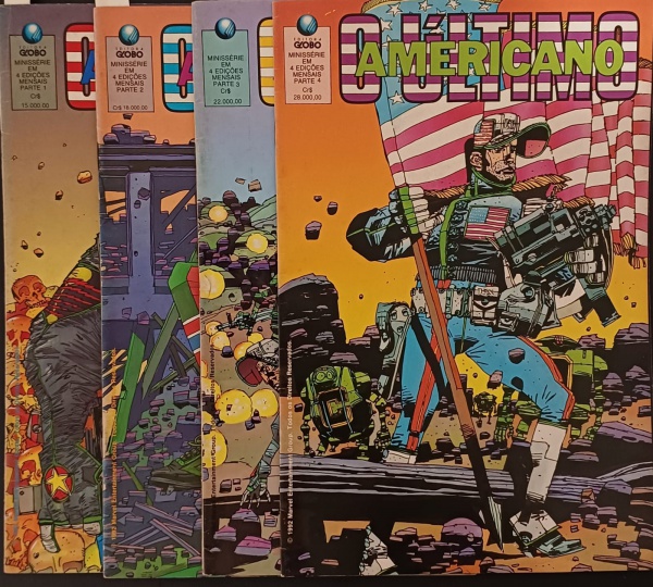 • Revista Quadrinhos !! O Ultimo Americano !! 4 unidades miniserie Completa !! numeros 1,2,3 e4 !! acervo de colecionador !! , edição do Ano de 1992 !! raridade !! editora Globo !!
