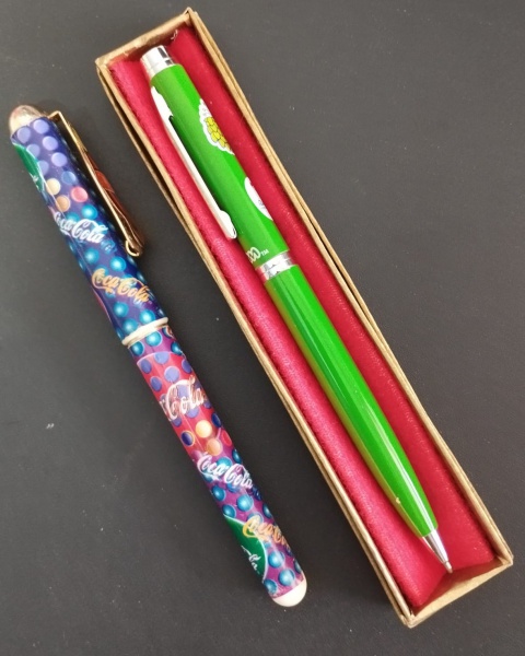• 2 canetas de Coleção !! promocional da Coca Cola !! com clip com desenho da garrafa tradicional  !! e outra da Olimpiada do Rio de Janeiro !! ambas em perfeito estado , sem tinta , muito tempo paradas !!