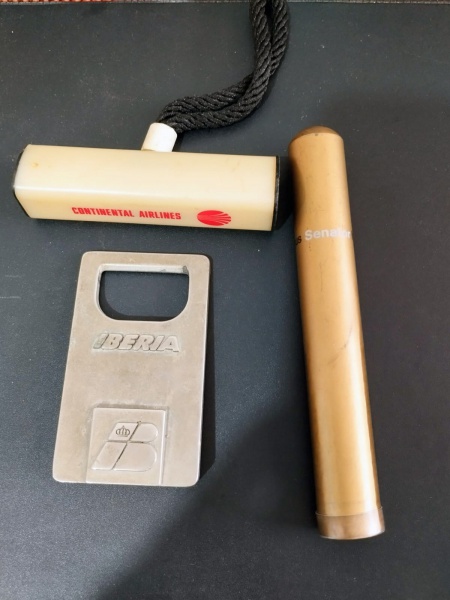 • Colecionismo- 3 itens !! abridor de garrafas da empresa IBERIA !! linda Peças !! material metalico !! + Lembrança da Empresa Continental !! Airlines Original Antigo !! + embalagem de Charutos da Empresa LUFthansa  da Alemanha !! todos artigos de colecionador !!