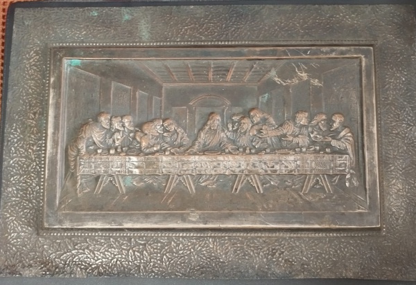 • Quadro - SANTA CEIA !! em material bronze , modelo placa com material pesado !! pode enquadrar ou fixar simples !! tamanho de 27cmx18 cm !! acervo de colecionador !! alto valor de mercado provavelmente manufaturado na decada de 1940 !!