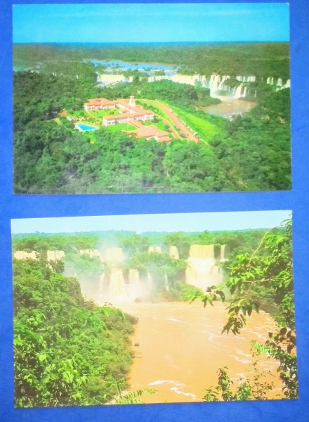 • 2 postais - cataratas do Iguaçu !! Lado do Brasil + Hotel do Parque Nacional !! Decada de 1980 !!!