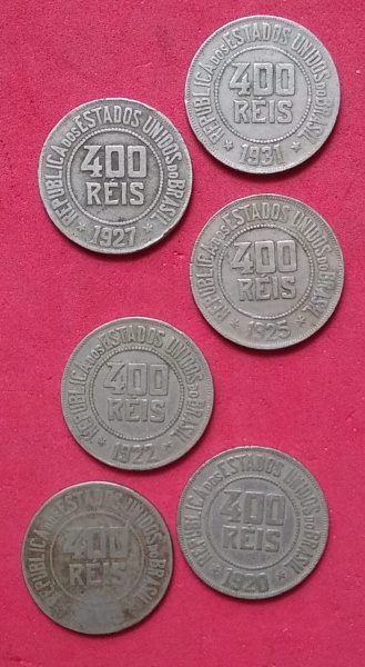 • 6 Moedas / Brasil- valor de 400 Reis !! todas as datas diferentes !! Tempo da Nova Republica !! Material niquel    !!! material cuproniquel !! praticamente metade da coleção completa de 14 moedas !!