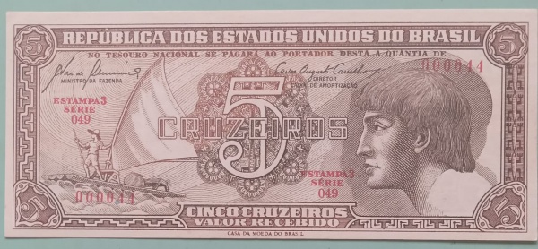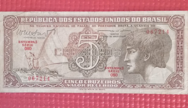 • Cedula - Brasil !! valor de 5 cruzeiros tipo indio !! !! serie 049 !! baixa impressão !! alto valor de mercado !! estado flor de estampa !! estimativa de mercado = 100,00 Reais !!