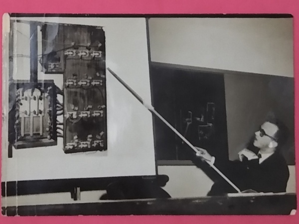 • Fotografia - professor explicando aula de engenharia Eletrica , quadro de disjuntores eletricos tipo faca , decada de 1950 !!!