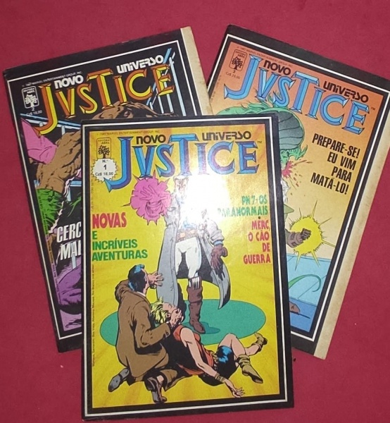 • 3 Revistas !! Quadrinhos !!  Novo universo JUSTICE !! Exemplar 1 , 2 e 3  !!! !! Edição Abril Jovem !! ano de 1987 !! Raridade !! Cerca de 35 anos !! acervo de colecionador !! Perfeito estado !! Alto valor de mercado !!