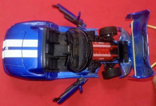 • Miniatura, Dodge Viper, Maisto, escala 1: 24, muito detalhado, abertura do capô do motor, azul com faixas brancas