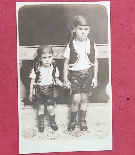 • Cartofilia - 2 irmaos em foto com fantasia de carnaval !! piratas do caribe !! ano de 1928  !! com carimbo do fotografo ano de 1928 !!