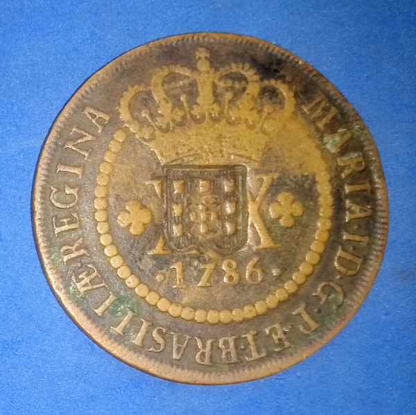 • Moeda/Brasil- material Cobre !! Valor de X Réis ano de 1806 !! Muito dificil de aparecer !! Catalogo marca MBC =120,00 R$ !! Brasil ainda Colonia !!!