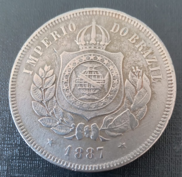 • Moeda - Brasil , valor de 200 Reis data de 1887 !! tipo fundo linhado !! linda peça , valor de mercado cerca de 50,00 Reais !! material cuproniquel !! tempo do Imperio !!