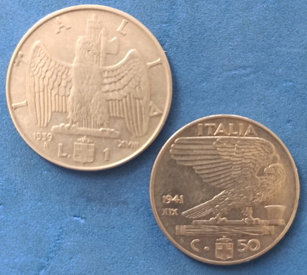 • 2 Moedas /  Italia  !!!   periodo da segunda guerra mundial !!! Anos de 1939 e 1941  !! Valores diferentes  !!peças escassas !!