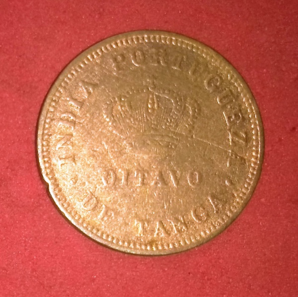 • Moeda / India Portuguesa !! Raridade Tanga  !!   !! Valor de 1 Oitavo !! Ano de 1884 !! Alto Valor de mercado = 200,00 Reais  !!