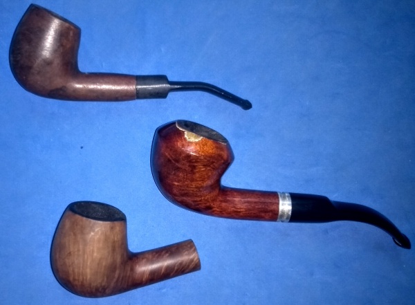 • colecionismo- 3 caximbos , 1- madeira c/verniz marca bazanelli + madeira simples e peça de madeira polida  sem piteira !!!