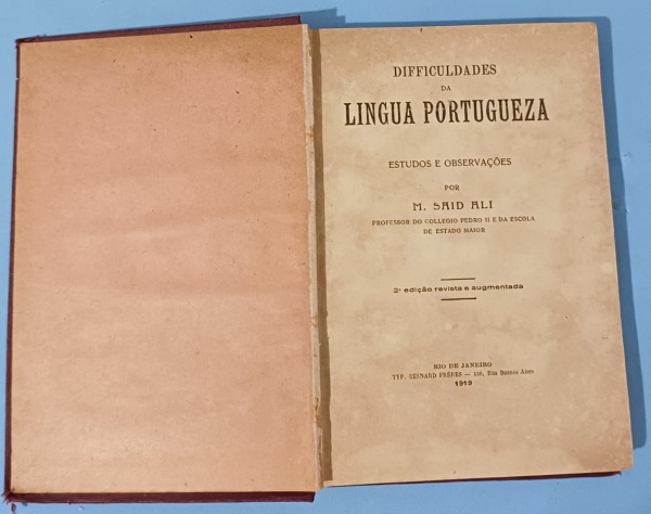 • Livro - Dificuldades da Lingua Portuguesa !! edição do ano de 1919 !! capa dura !! 327 pag. autor M.Said Ali , professor do Colegio Pedro II e da Escola de Estado maior !! Raridade !! acervo de colecionador !!