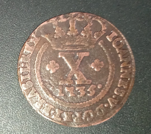 • Moeda - valor de X- Reis !! data de 1735 !! material cobre !! muito antiga !! valor de mercado cerca de 290,00 reais !! dificil de aparecer !!