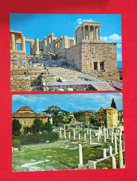 • 2 Cartões  postais - Detalhes da Grécia as Ruinas existentes,  raridade peças Gregas originais um com selo de época.
