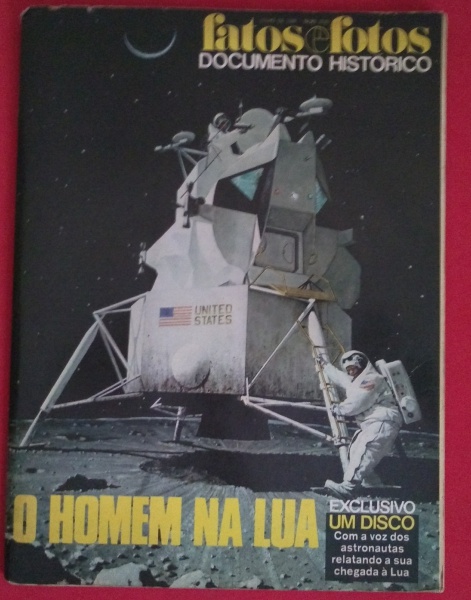 • Revista, fatos e fotos com exclusivo disco com a voz dos astronautas relatando a sua chegada a lua, edição de 1969, Block Editores