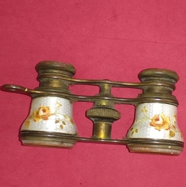 • Colecionismo- binoculos de teatro !! Tipico de uso de mulheres !! com material metal com combinação de louça decorada !! lente embaçada precisa de limpeza de polimento .