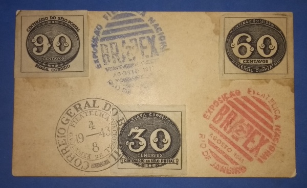 • Filatelia - 3 selos especiais comemorativos valor de 30/60/90  !!  Com carimbo de correios datado de 1943 ano da segunda guerra mundial  !!!