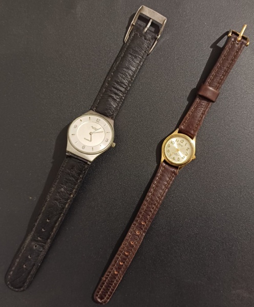 • 2 Relogios modelos unisex !! pulseiras de couro cor preta e cor couro marrom !! marca condor e marca Swacth  !! suiço !! para conserto ou revisão , parados a muito tempo !! acervo de colecionador !!