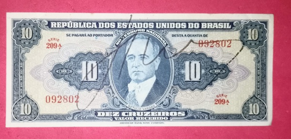 • Cedula Brasil - valor de 10  cruzeiros azul autografada !! circulação entre 1943 e 1960 !! estado soberba !! valor de mercado = 90,00 Reais ,