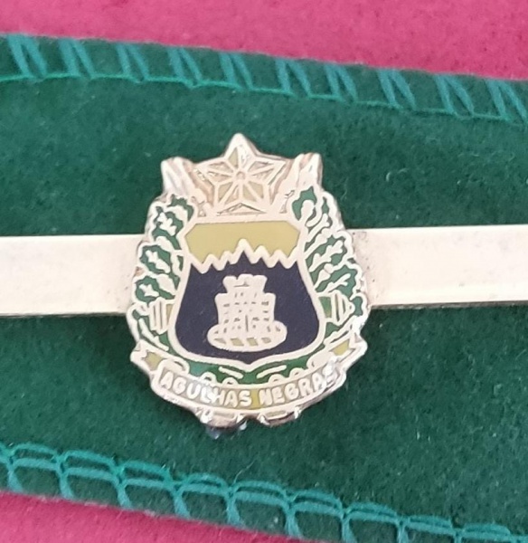 • Militaria - Broche militar da Academia de Agulhas Negras do Brasil !!! preso em pano verde !!! , comprimento maior de 6cm !!! cor ouro !!